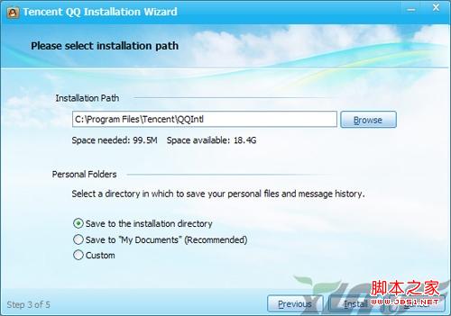 QQ国际版的安装界面和一般软件没什么不同,在语言方面,提供了英文,法文,德文,西班牙文,日文和韩文让用户选择。