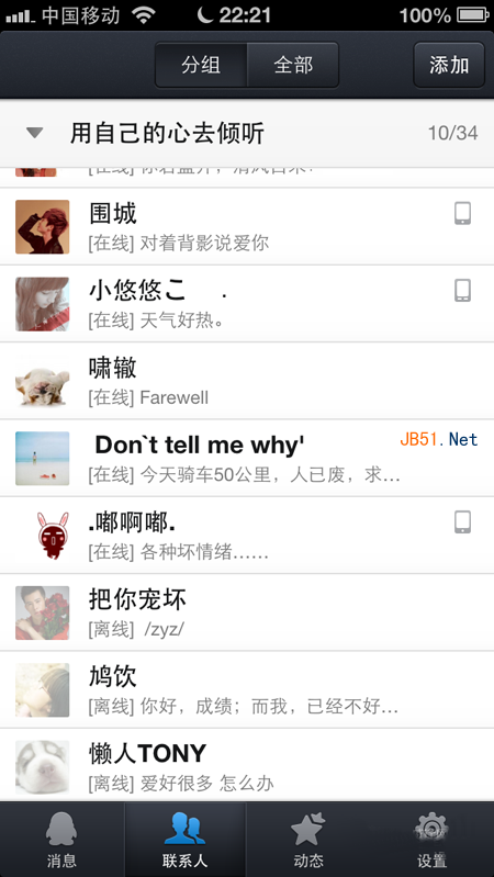 多了附近的群,还有一个大家关心的,好友离线状态,这次真的不一样了。离线的好友是虽然还是彩色,但是多了一层白色了,感觉颜色淡了 这样还是容易区分的