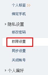 2、在左边的选择“隐私设置”下方,选择“权限设置”,如图: