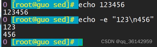 echo 123456 默认按行输出,如需要换行,加选项,设置\n