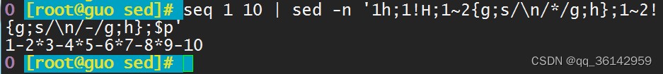 如果对sed的模式空间与保持空间有所了解,就能理解下面的命令:把一列转为一行并用不同的连接符。