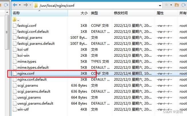 nginx安装目录下,conf目录下,主配置文件nginx.conf也在其中,后续对nginx的使用基本上都是对此配置文件进行相应的修改。