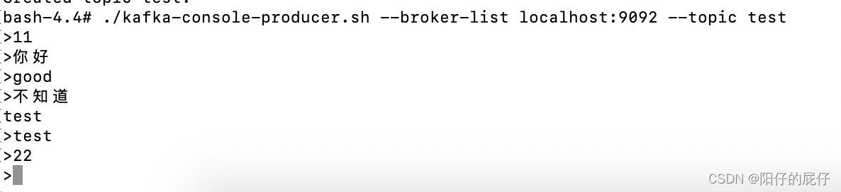 ./kafka-console-producer.sh --broker-list localhost:9092 --topic test