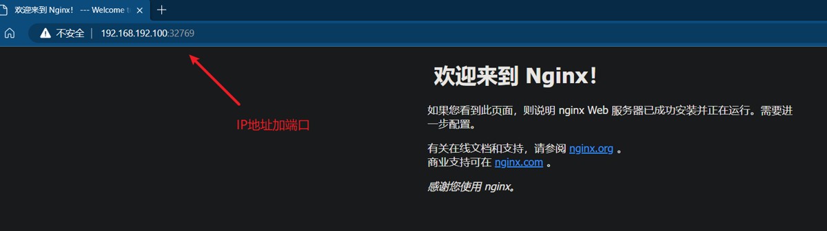 现在,你可以通过主机的随机端口访问 Nginx 服务。例如,如果输出中显示 32769,则可以在浏览器中访问 http://localhost:32769 来测试 Nginx 是否正常运行。
