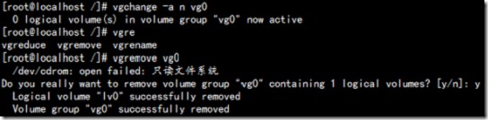 命令:vgchange -a n vg0 ———— 使之不再可用