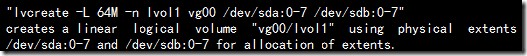 命令:vgcreate [-s=16m] test_vg /dev/sdk1 /dev/sdl1