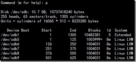 命令: fdisk /dev/sdb ———— 创建物理卷并修改ID为8e