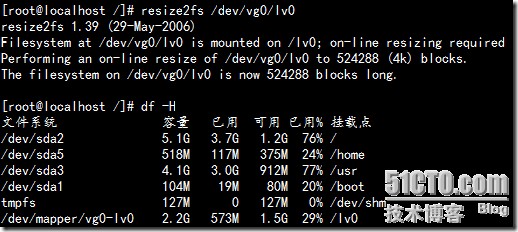 在为LV扩容之后,应同时为LV之上的文件系统扩容,使二者相匹配。对不同的文件系统有相对应的扩容方法。