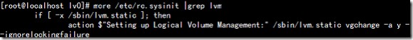 在RHEL 5以后都会自动激活LVM,如下,在系统启动的时候会自动激活的
