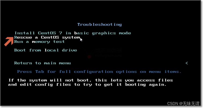步骤二、救援模式,使用命令修复