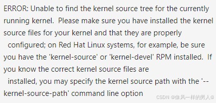 这个错误提示表明系统找不到当前运行内核的源代码树,通常在安装 NVIDIA 显卡驱动这类需要编译内核模块的软件时会出现。在 CentOS 系统中,你可以按照以下步骤解决该问题