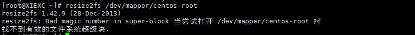resize2fs: Bad magic number in super-block 当尝试打开 /dev/mapper/centos-root 时