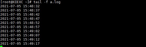 #!/bin/bash #每隔5s打印当前时间并输出到指定文件里 while true do echo "`date '+%Y-%m-%d %H:%M:%S'`" >> /root/a.log sleep 5 done