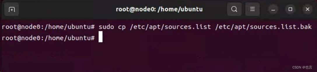 // 备份源内容 (需要管理员权限) > sudo cp /etc/apt/sources.list /etc/apt/sources.list.bak