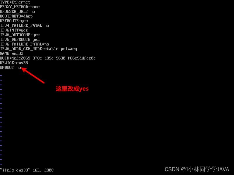 vi /etc/sysconfig/network-scripts/ifcfg-ens33