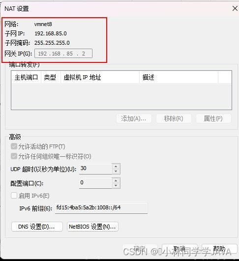 中间2个参数的值需要对应上面的VMnet8虚拟网络对应的值,第一个根据自己所需来设置,最后一个默认114.114.114.114就好了