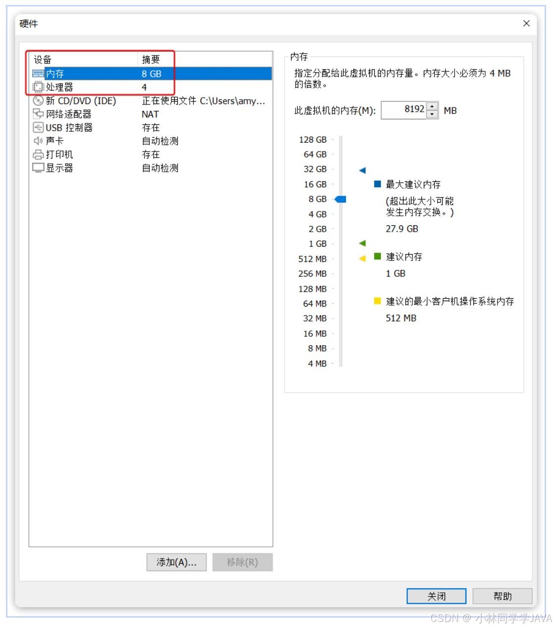 在弹出的窗口中设置虚拟机硬件,建议CPU给到4核,内存给到8G: