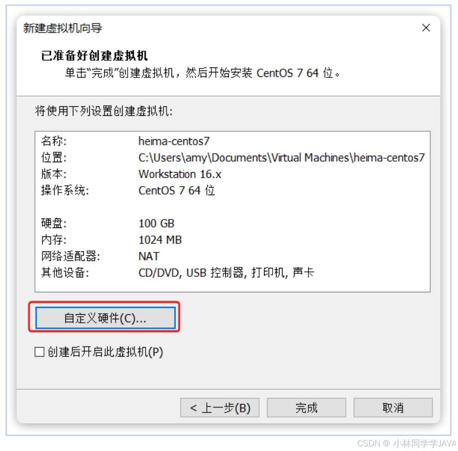 继续下一步,然后选择虚拟机硬件设置: