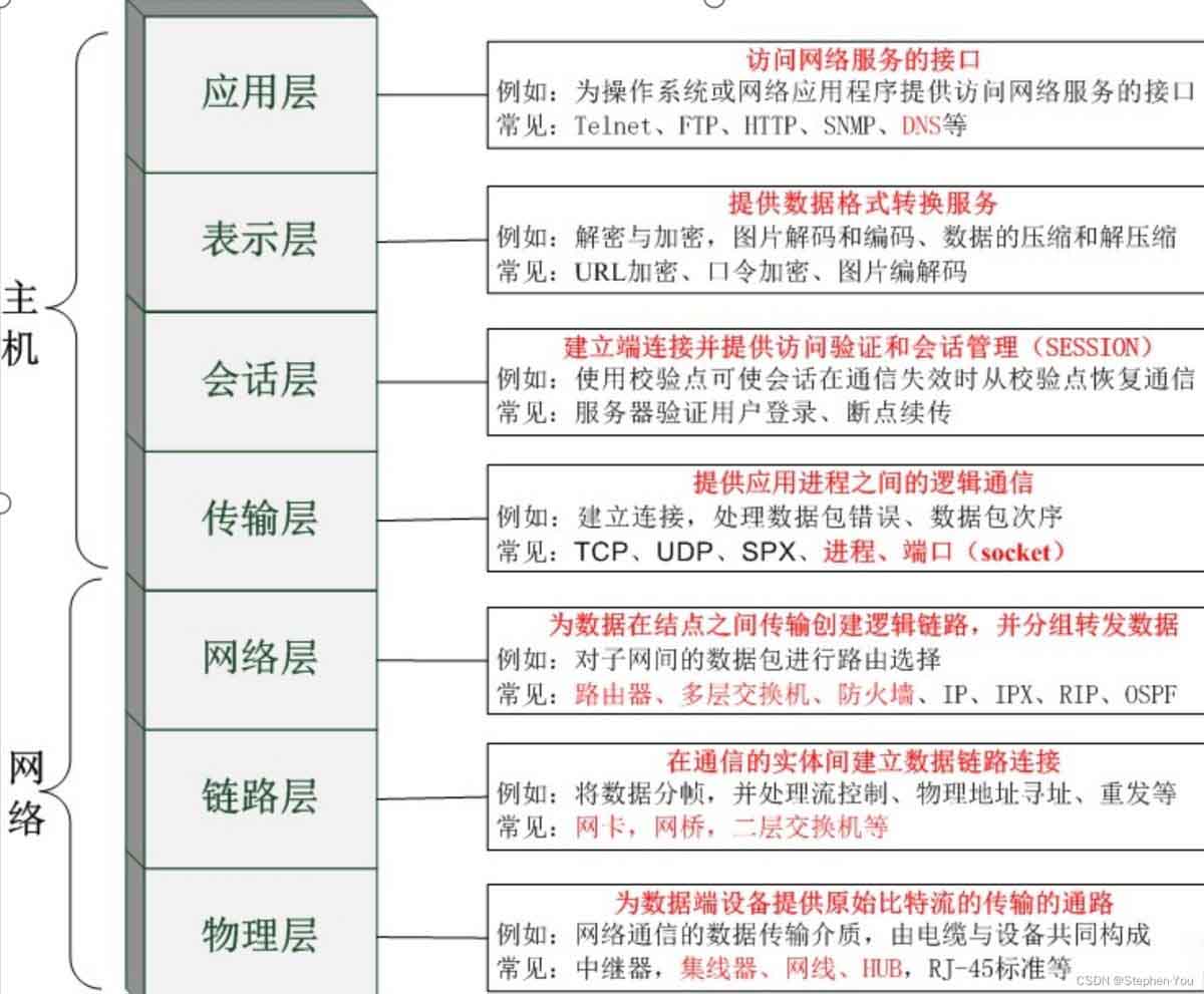 网络模型/七层模型,也称为OSI(Open System Interconnection)参考模型,从上往下的,越往下越接近硬件,越往上越接近软件: