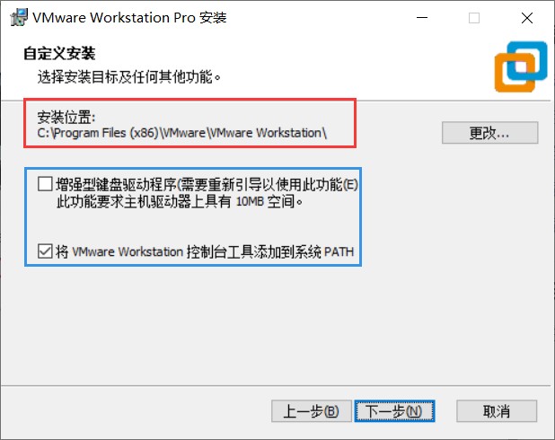 ② 打开安装包,同意许可证,下一步见下图:红色框建议不装在C盘,自行选择安装路径。蓝色框默认即可。完成下一步。