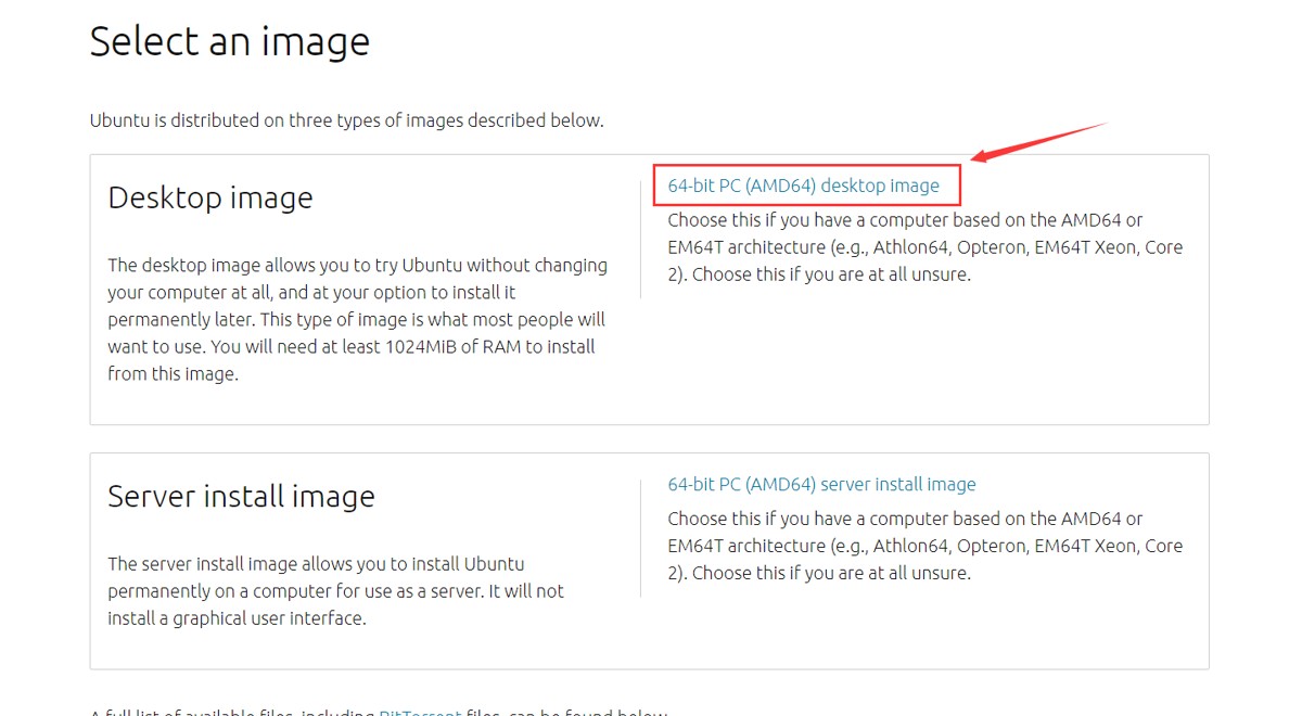 ② 选择 64-bit PC (AMD64) desktop image,完成下载。