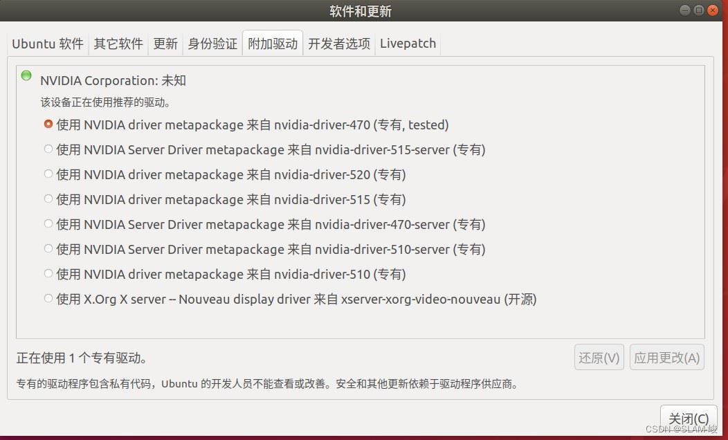 之后对驱动进行更新,查看可以安装的版本,但是我都不支持只能用470了,无伤大雅!