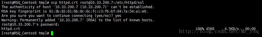 可以看到客户机上的文件已经上传到Centos服务器的/tmp临时文件目录中了,由于是自己做的实验,所以就不检查了,直接签署证书了。**