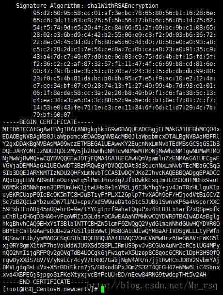 PS: 本来在签署证书的时候应该把签署过的证书放在/etc/pki/CA/certs/目录下,然后把这个文件名改为这个证书所属机构的名字,以便以后查找使用,在这里说一下。但是本实验中没有这样做!