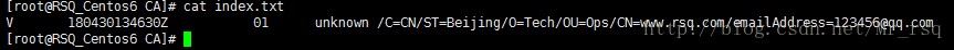 /etc/pki/CA/目录下的index.txt文件,会发现有一个证书已经签署成功了。