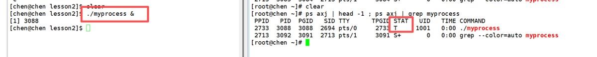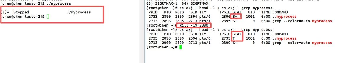 就会发现原来的进程从S+的状态变为了T状态。