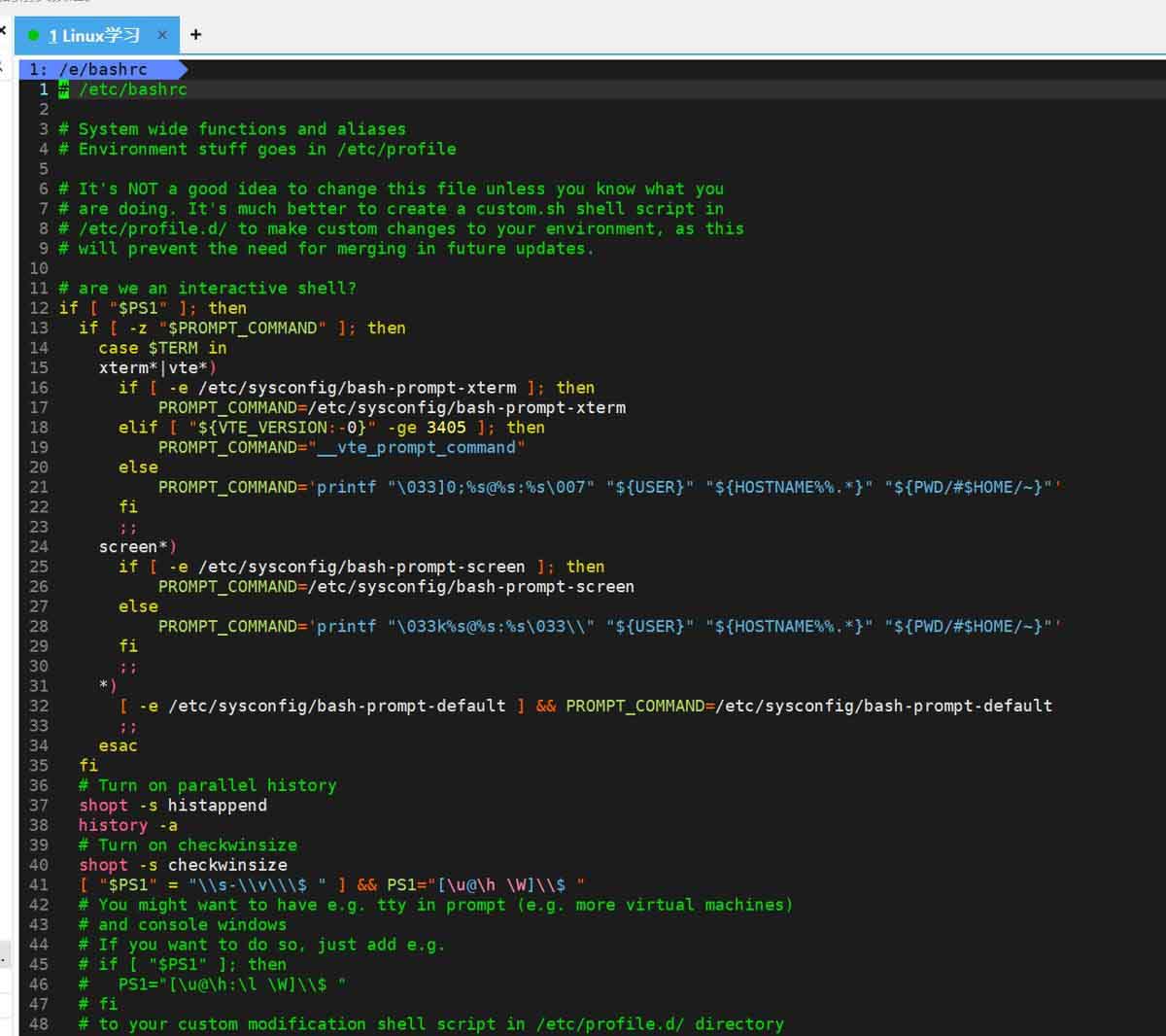所以流程就是:bash创建时先会读取 .bash_profile 文件,这个文件要执行的操作是去访问 .bashrc 这个文件,而 .bashrc 的文件操作是访问 /etc/bashrc 这个系统文件,这个系统文件里面存在的就是环境变量信息。