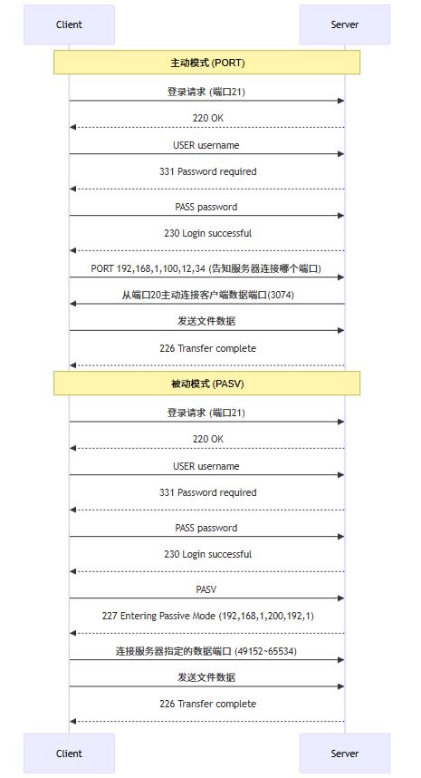 - 被动模式中,客户端连接服务器的数据端口 —— 更适合现代网络环境。