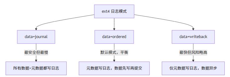 nodiratime:同noatime,但仅针对目录commit=60:每60秒批量提交一次日志,减少fsync频率