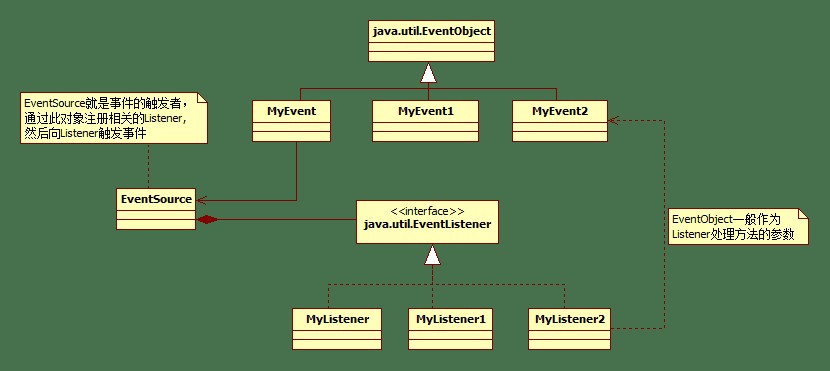 下面我们看下Java中事件机制的实现,理解下面的类结构将帮助你Tomcat中监听机制的实现。