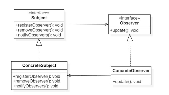 主题(Subject)具有注册和移除观察者、并通知所有观察者的功能,主题是通过维护一张观察者列表来实现这些操作的。