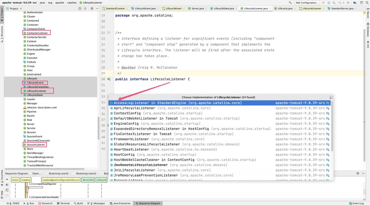 基于上面的事件监听的代码结构,你就能知道Tomcat中事件监听的类结构了。