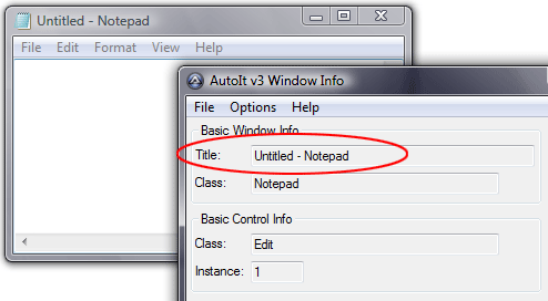 打开窗口信息工具后, 单击记事本窗口以激活它;此时窗口信息工具会为您提供有关信息.