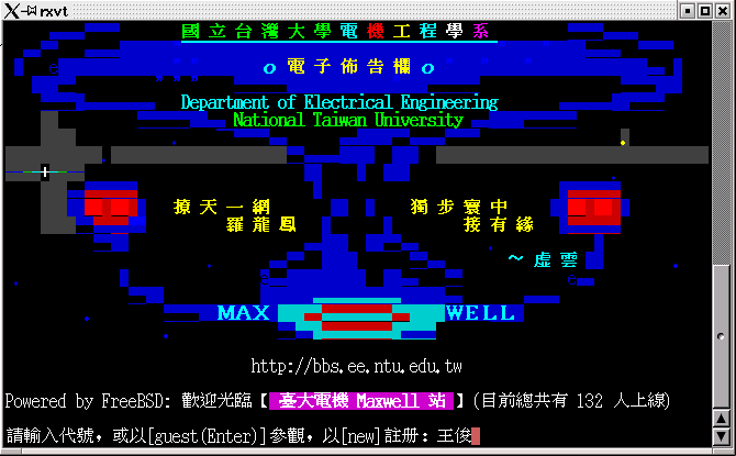 不过 Konsole 对于一些 ANSI 的支持不是很好,如果您要使用中文的终端机来连上 BBS 站,必须安装其它软件。FreeBSD 中收录了许多中文终端机软件,例如 Eterm、crxvt 等,这里我们将安装 crxvt: