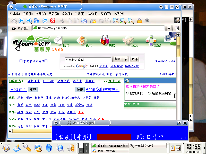 除了使用 rxvt 之外,其它像 Konqueror 或 Kword 下的中文输入也没问题,如图 10-11。