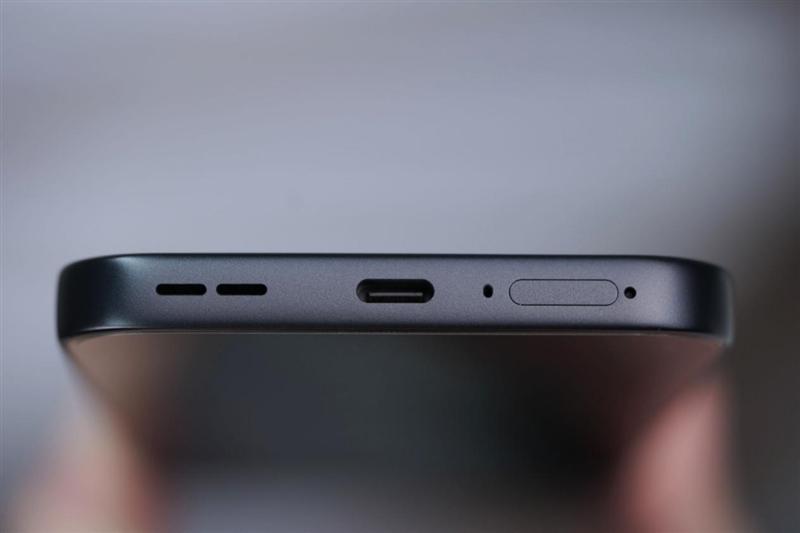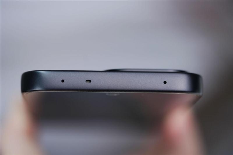机身顶部和底部一致性相当好,没有金属中框的断口,顶部为双MIC口以及红外遥控,底部则是单MIC口配上扬声器、Type-C、SIM卡三件套。