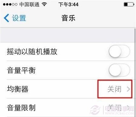 3、然后,点击“均衡器”,在均衡器中选择一种你手机里的音乐最多的类型(Rock,R&B,流行,这些对于大多数歌曲都是很适合的归类选择)