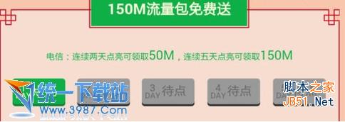 中国电信联合百度地图在北京、上海、广东、江苏、福建、安徽、陕西8省市的电信用户都有机会获得150MB流量,在1月21日至2月6日期间用户只需登录百度地图手机客户端连续点亮2天获得50MB流量,连续5天点亮按钮即可有机会获得150MB流量。