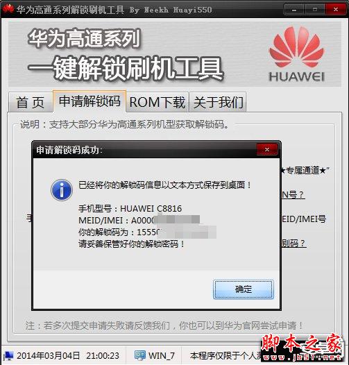 华为C8816怎样申请官方解锁码和一键解锁