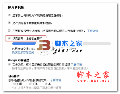 下载转化好的照片,就可以开始将照片上传到Google+了,上传之前,先确认自己的“Google+设置”里,已经选中了“以完整尺寸上传我的照片”,此外,“自动增强新照片和新视频的效果”选项最好也选择一下。