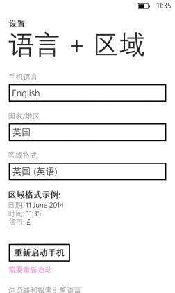 打开设置> 点击语言+区域> 选择英国> 重启手机