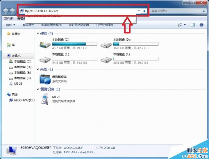 第四步:打开“计算机”,在地址栏上面输入,然后轻击回车。