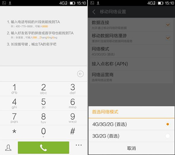 拨号、4G网络选择