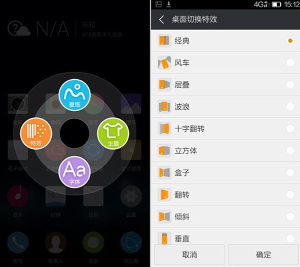 ELIFE S5.5L搭载的Amigo OS 2.0中加入了随变主题程序,在这里用户可以自由选择主题、桌面效果、字体等等。
