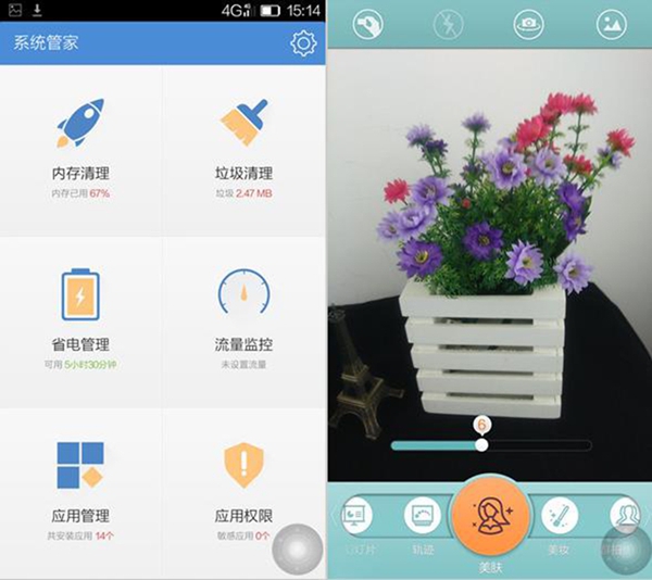 ELIFE S5.5L的Amigo OS中加入了系统管家,用户可以用来管理手机的程序、监控流量等等,代替了日常的第三方安全软件;也加入了趣拍相机程序,类似第三方美颜相机的功能,比较适合女性用户使用。