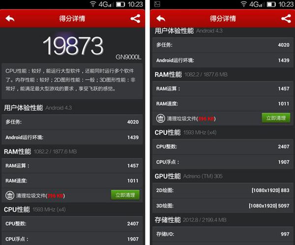在硬件方面,ELIFE S5.5L由原来的真八核处理器,改为高通骁龙MSM8928四核1.6GHz处理器,维持了2GB的运行内存。在实际跑分中,ELIFE S5.5L这颗高通骁龙400还是处于不错的水平的,当然和搭载真八核处理器的ELIFE S5.5还存在些许差距,但实际使用起来都很流畅,没有明显的区别。